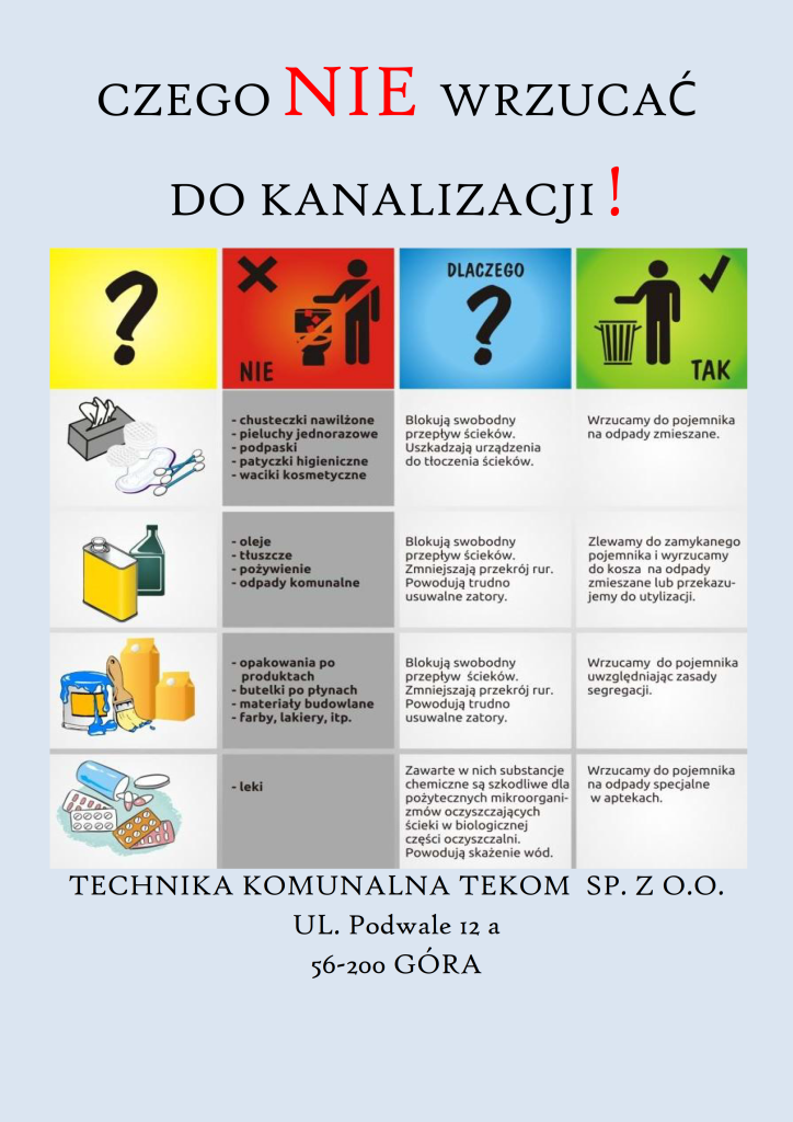 Cennik usług Działu Wodociągowo-Kanalizacyjnego