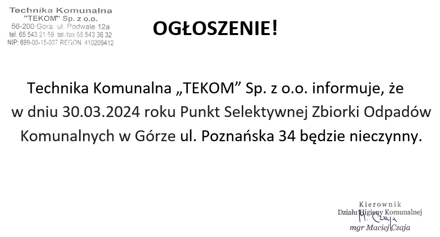 Ogłoszenie - PSZOK