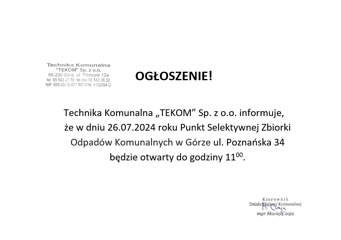 Ogłoszenie - PSZOK
