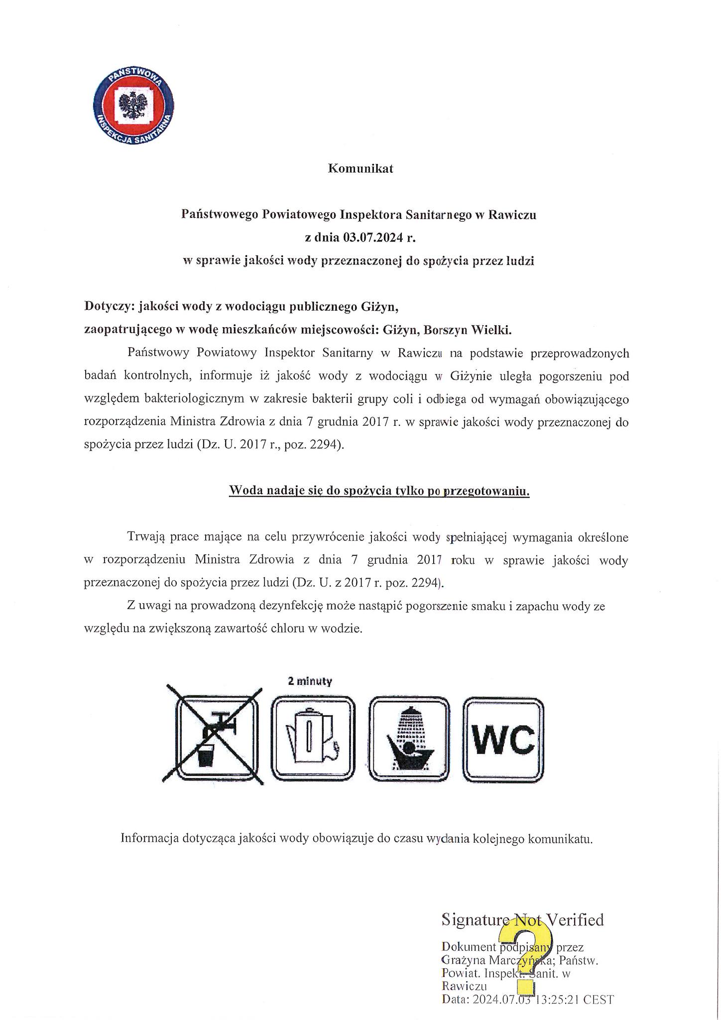 Cennik usług Działu Wodociągowo-Kanalizacyjnego